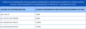 ⚠️ Atenção da gestão:O recolhimento da competência janeiro/2026 ocorre em fevereiro. Desse modo, a atualização impacta: