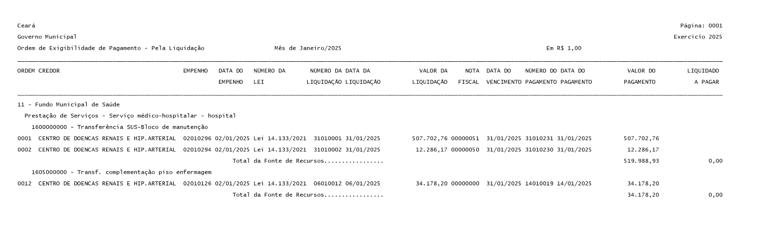 O relatório poderá ser emitido no seguinte caminho: Outros relatórios > Relatórios gerenciais > Relatório da Ordem de Exigibilidade de Pagamento – Pela Liquidação.