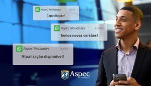Além das redes sociais, também é possível manter-se informado sobre as soluções da Aspec através do WhatsApp.
