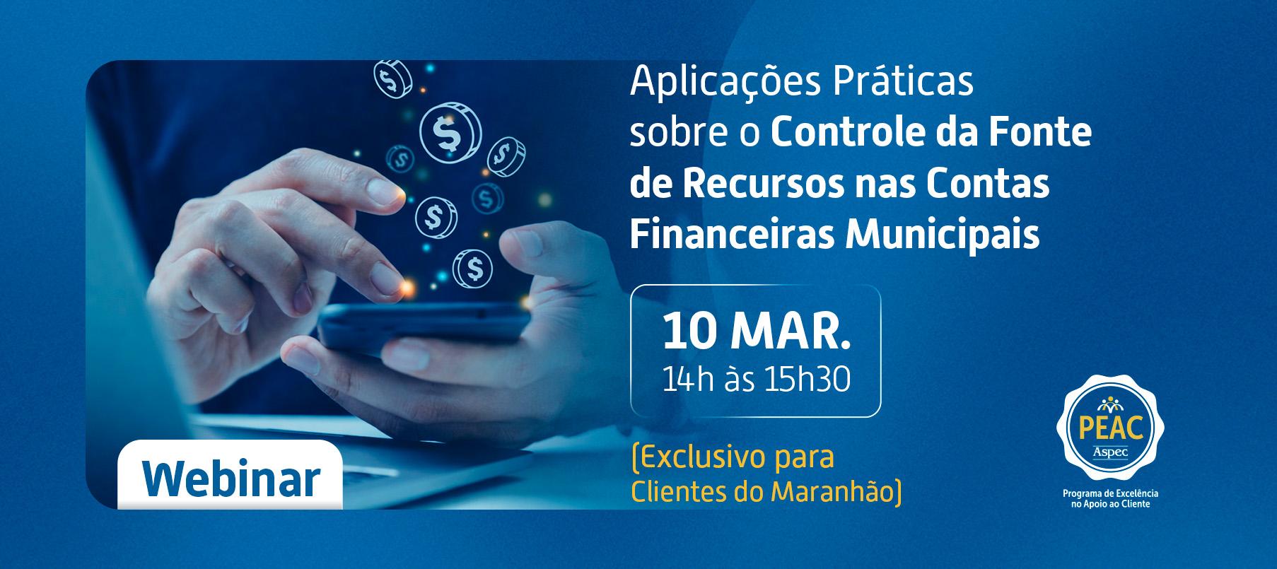 Novidades Eventos [Webinar] Aplicações Práticas sobre o Controle da Fonte de Recursos nas Contas Financeiras Municipais Exclusivo para Clientes Aspec Maranhão Te convidamos a participar do nosso Webinar Aplicações Práticas sobre o Controle da Fonte de Recursos nas Contas Financeiras Municipais. ... 25 de fevereiro de 2026